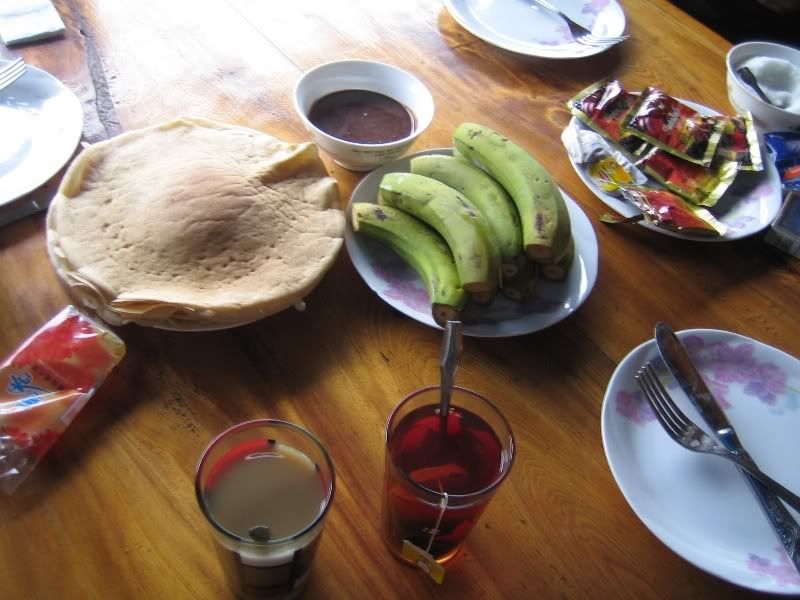 到达LAO CHAI火车站已经是4:30分了,我们到达门口就有一辆车载我们到SAPA TOWN,路程需要50分钟,士机载我们到我们所订的旅游社酒店,等候我们的导游,在这等待时刻我们到酒店的餐厅吃早餐(我们已包早餐)