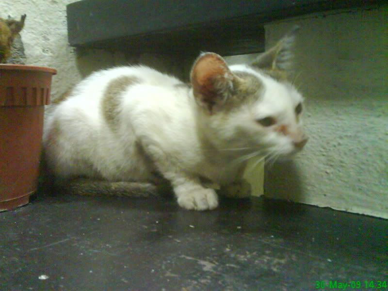 猫眯的背部严重脱毛。脱毛的部分还有伤口,不过愈合了。。。