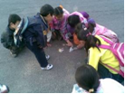6:20,一群小学生在马路当中玩牌。这是通往课植园的入口,同学就这么扒在路口上玩了。