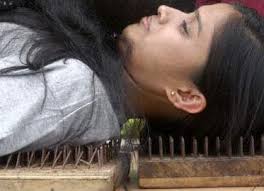 睡钉床 ( 物理学可解,与气功无关,胆子大者皆能睡)