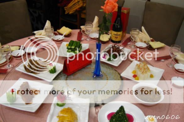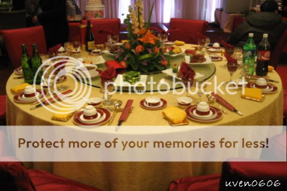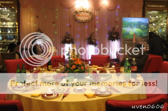 那晚有4对新人办喜事,哈哈,进来的来宾必须找对子位子噢~~