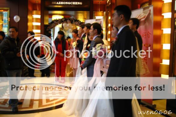 正当准备出发的时候,天公不作美,雨慢慢地下,越下就越大。哎呀,怎么拍外景的,我也没得去拍拍了。到达目的地,我们都没下车,就只有新人和一些人下去拍啦。雨又不是毛毛雨啊,怎么拍呢,呵呵,我也不知道啦!!拍完后就直接赶到酒店啦,轮到晚宴的时候了(大概5点吧)。那天好多人结婚噢,在那酒店有大概四对的新人。(他们都没有休息的噢,不像我们,早上出门,下午有得休息,晚上摆酒)