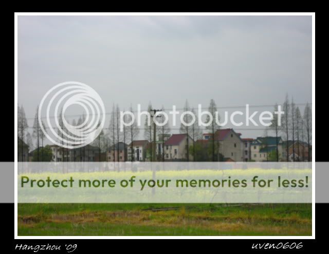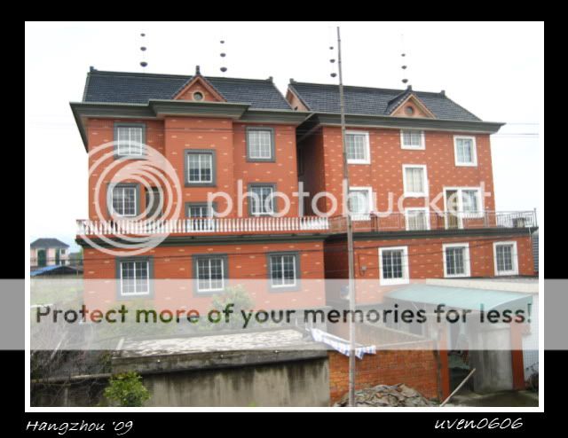 一路上就看看风景啦,但没法拍照。哈哈,车子的镜子不是很干净,索性不拍。到了农村,那儿的景色好漂亮噢。因为是油菜花的季节,一片青黄色。然后好像还有其它的景色。哎呀,无法拍下,真可惜啊!!那儿的房子好像国外的房子噢。一切只能看不能拍,就一直到新郎官的家啦。