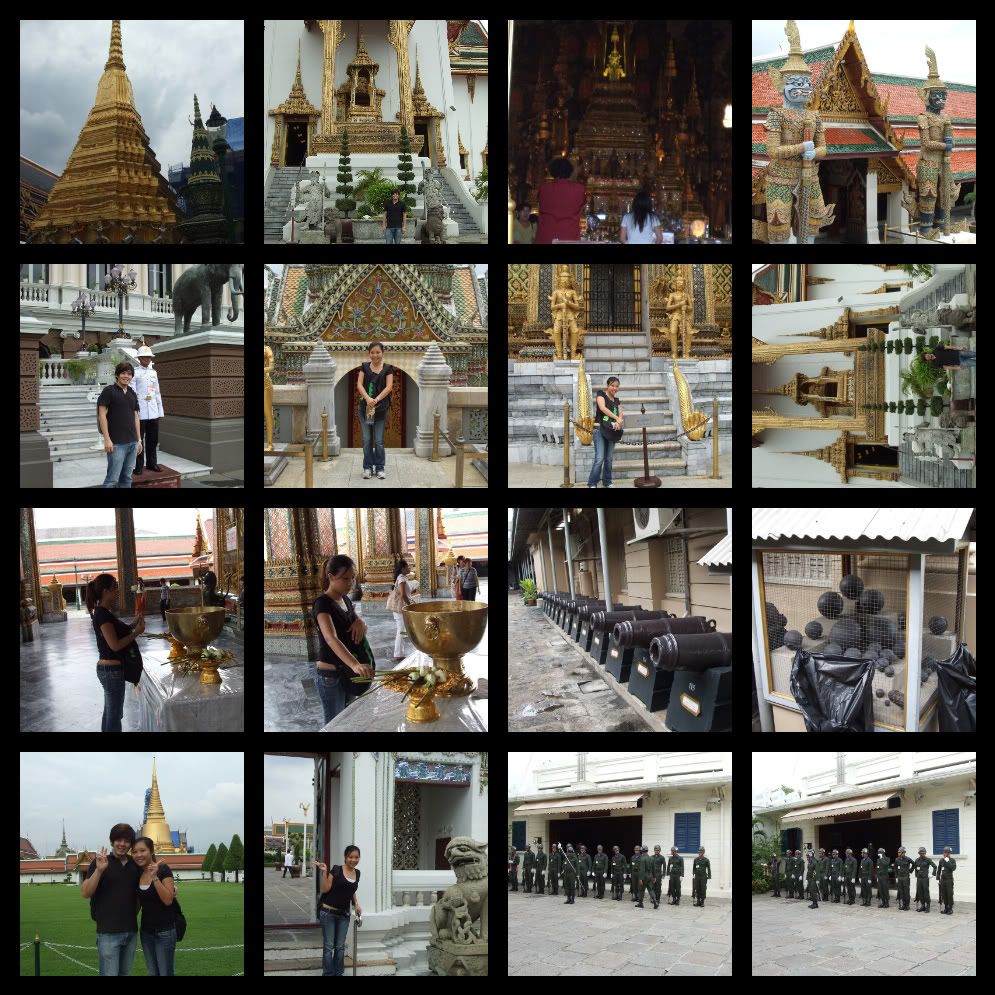 **故事来了~~ 虽然很尽力去避免被骗,他还是发生了。~~我们ON THE WAY去大皇宫的时候一定会经过一群鸟 (PIGEON)虽然我已经知道他们的当,我男友不懂~!!有人就会来,把玉米分成几包~~然后硬塞给你~~你的手,你的口袋,有的赛就塞。。说鸟饿了。。做善事吧~!!我男友居然傻傻拿5-6包~!我喊他又不要听~!!当我们要走的时候他们就跟你要钱了。。在背包客上听说他们被砍500BAHT! 那时我就傻了~~被砍怎么办~~我一时控制不了情绪喊那班人~i only have 40 baht, take it or i call 1515。。他们狠狠瞪了我一眼就走了。。还好没事。。都怪那个笨蛋。。不听我说的~~!!!grand palace - baht 350 per person / wat pho 50 baht..