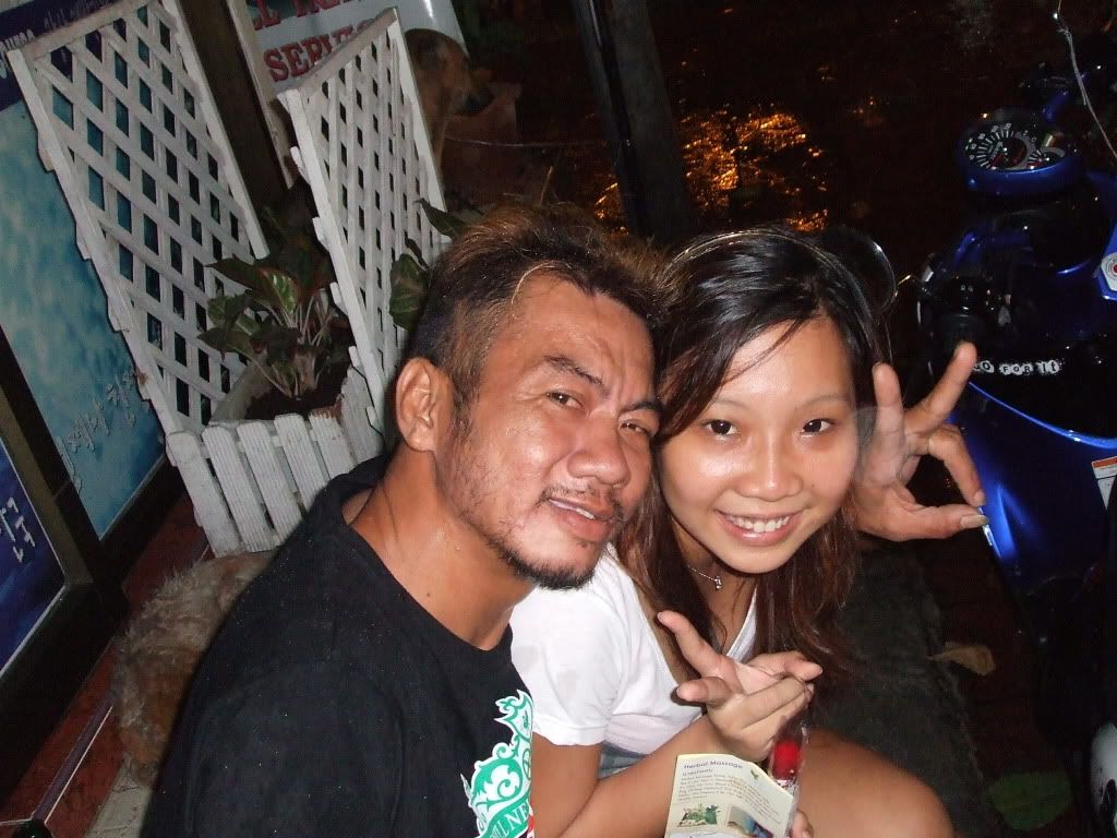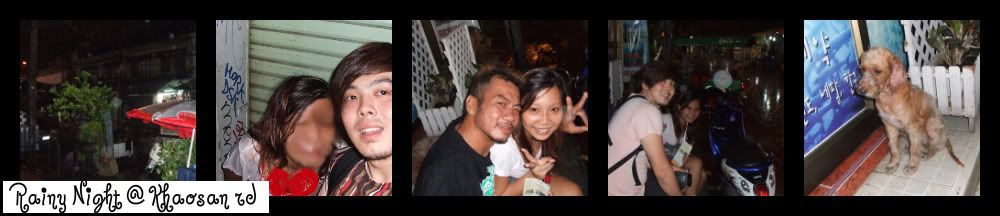 PS:当我们走到一半的时候,在Soi Ramutri,尽然下起雨!!我们在躲雨时,遇到了一位超过热心的泰国人,还请我们喝酒呢。。可是我们不敢喝~~跟我们聊了半个钟头~!突然拿我们的相机要求和我拍照。。我男友怕会乱乱来。。就快快淋雨回去。。那个泰国人其实没有什么恶意吧。。还特地驾MOTOR去帮我们拿纸袋。。