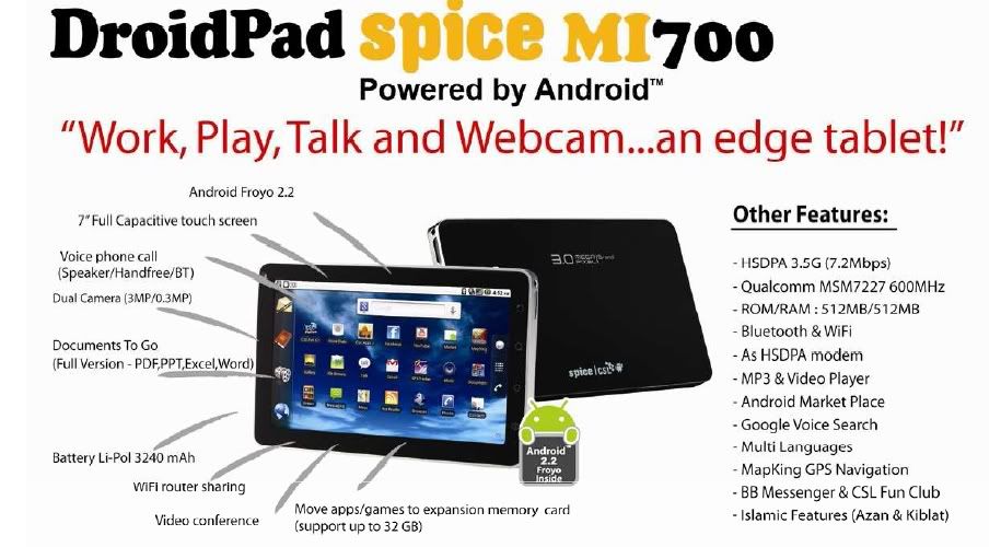 【CSL DroidPad Spice MI700 (Android 2.2) 本地Android平板電腦 討論專區】