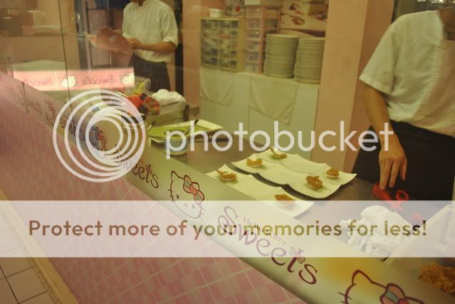 透明的窗窗,可以看到厨师们在准备餐点. 不懂那些男生厨师们在做着一个个的那些hello kitty餐点时, 会有什么想法哈哈 .