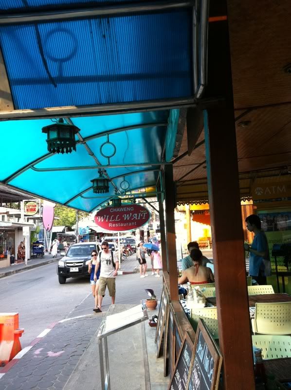 我们就骑scooter到Chaweng road,其实我们都不会路.只是来Koh Samui 之前看过map而已… 很兴运的我们5天的全程都没跑错路… 来到Chaweng Road 时就随便选一间餐厅吃晚餐咯… 一整天都没吃过东西. 竟然走进这间Will Wait 餐厅,之前看过其他游记有提过这餐厅… 食物还不错.. 甜品很好吃..