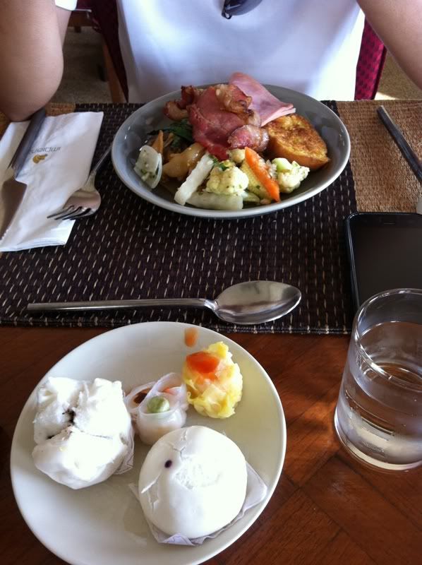 第二天, 一早7am 就起床了. 就在Hotel 吃早餐. Hotel 的早餐很多选择. 多种面包, sausage, bacon, 粥, 炒菜, 点心, cereal, 水果, 等等..