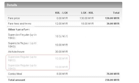 exp: KL去Penang 机票来回RM11+RM14=RM29,可是行李费15KG却要来回= RM50 比机票贵!要投诉消协了!难道人比行李贱?:@:@:@