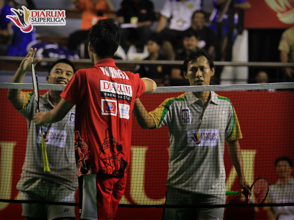 昨日最后一輪初賽,萬隆SGS 以4比1擊敗了穆西卡古杜斯,李宗偉以21比17、18比21及21比16擊敗同胞哈菲茲,另兩位單打道菲及湯米蘇基亞多,也擊敗對手,以3比0立于不敗之地,獅城男雙亨德里與猜育也擊敗魯魯與亨德里古尼亞旺錦上添花,僅亨德拉與安迪卡丟了一分,但無組隊伍以5勝1負奪得初賽第一名。