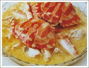 2、再次下汤蒸蟹时,火候必须控制得宜,鸡蛋清才不会变成蜂巢穴。