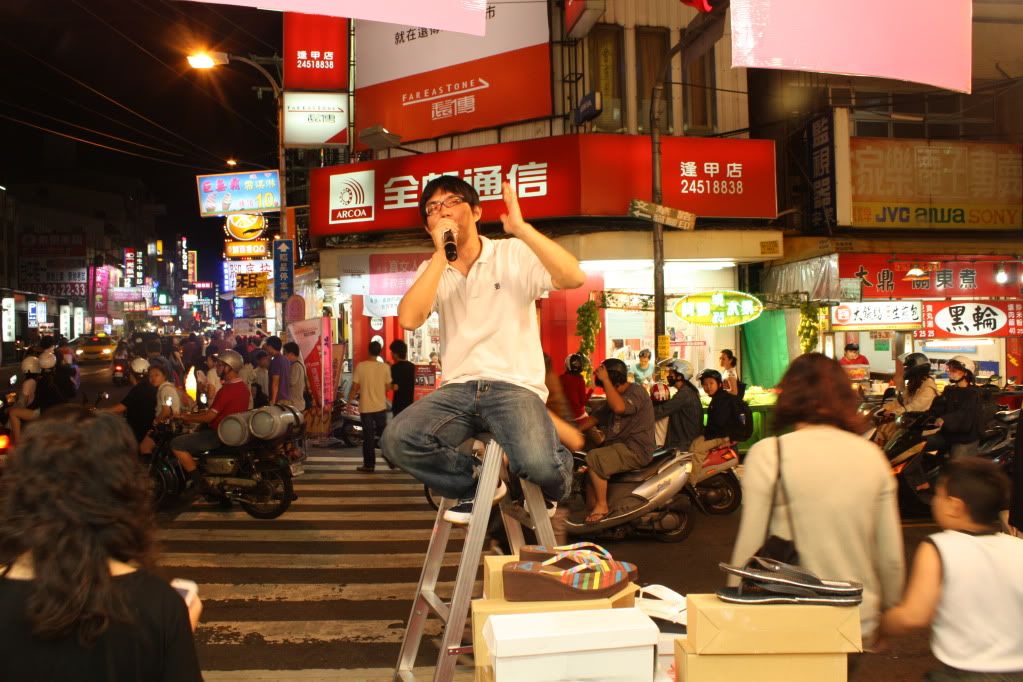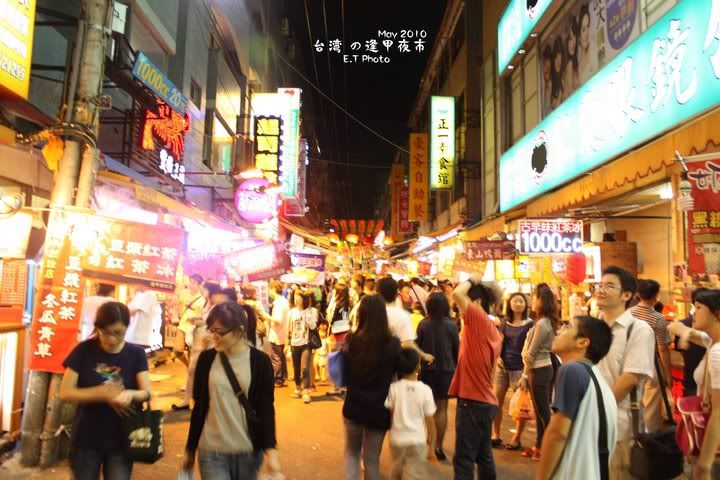 台湾的夜市真热闹呀!大致都是年轻人在经营夜市,他们好有冲劲力呐~ 年轻人嘛~ 多新点子也很有创意呀!夜市里可买到吃的,喝的,玩的,穿的可说是应有尽有。 逢甲夜市著名吃的是地瓜球、大肠包小肠还有咸水鸡。 第一晚逛夜市真的有点依依不捨,样样东西很新鲜呀!看到的都好想吃…