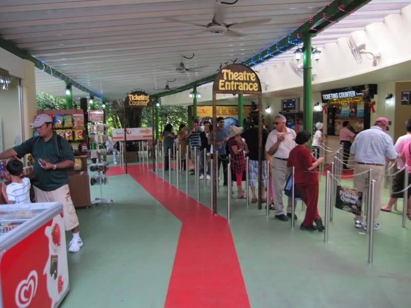 第一站Sentosa 4D Magix , 在这里玩都要排很长的队,又很热。每到一个attraction都会为你们解释和警告。一进去就给3D的眼睛,椅子是会移动的,当在观赏戏剧是会有风吹或水喷你,所以请准备好面纸。