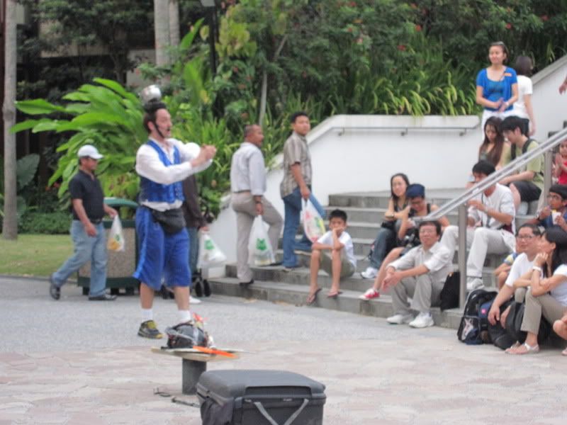 就在27.11.2010的早上坐的士去机场。飞机是1045的,大概一小时后抵达。一下机就搭Skytrain去T2.一出机场就去MRT的柜台加额,怎知道那Ezylink卡已经过期了,于是她退还$16.50, 然后小婕再用$12买新的一张,里面的价额有$7, $5 is non refundable的。小婕就搭MRT从Changi Airport坐到Aljunied站。出了车站,天气好热,在附近走了很久问了几个人都找不到酒店。到最后不知怎么找到了。把行李寄放在酒店后买了包果汁喝就回去车站准备到Universal Studio去。