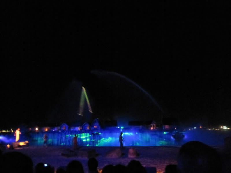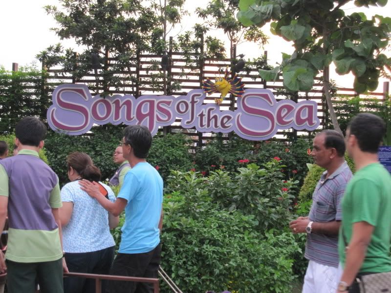 吃完晚餐,看到很多人排队进场,所以也跟着去,找个位子坐下,前面有个小档口买饮料和小食品。表演开始,有一群年青人在唱歌,其实看完小婕都不知道在做么,不过那灯光喷水的确很美。表演完毕,就排队搭SE去回Sentosa站,好长的长龙,不过他们控制次序,还满不错,一到那边就有人跟你打招呼安排次序。