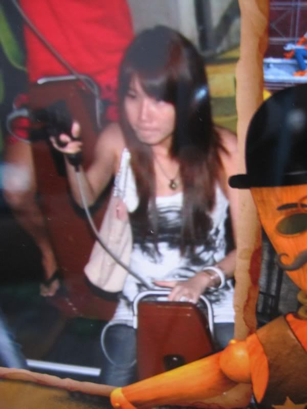 Desperados 也不错,是射击有戏,在坐骑上有显示你的分数,每一场完毕他们回播放前几名的照片,第一场,小婕最高分,70分,接下来就没V的份咯!射击完毕第一件事情就是去看被拍到的照片,有把它买下,Cineblast的就有的选2D,3D的照片,其实还满贵的因为换去马币就贵了。不过一次而已就无所谓了!