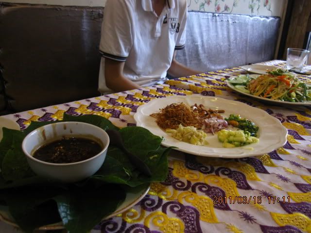 check in guesthouse.. 然后,去考山路吃泰国食物,店长亲自下厨……(^^,)没有特意去找好吃的,只吃本地的风味(店名Lotash Seed)……