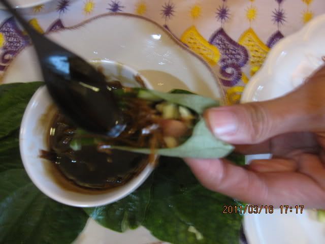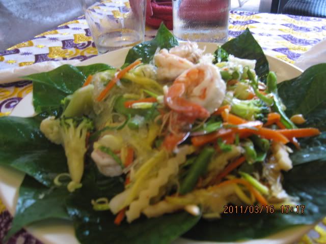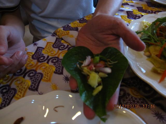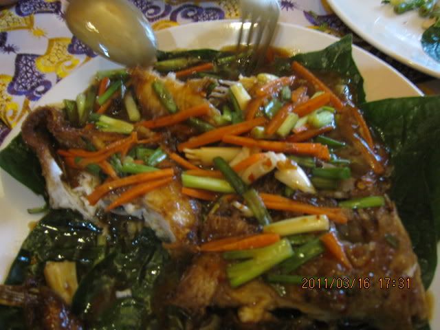 最好吃的是谈水鱼(没有泥土味的)和Miang Kam:叶子包着椰糖、薑、辣椒、椰絲等一起吃,自己包来吃(它的酱好吃)。 其他的,五个行星给三个星星…… 点了tong yam kong煮medium辣,真的是不辣,甜甜的…不过,我还是比较喜欢辣辣的tong yam kong.. 但是一盘菜肴(不知叫什么名),yam ta krai和一盘泰国salad很辣,tong yam kong的辣就刚刚好,有点甜,不喜欢辣的人应该会喜欢…