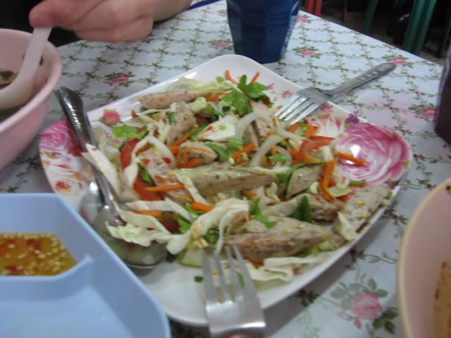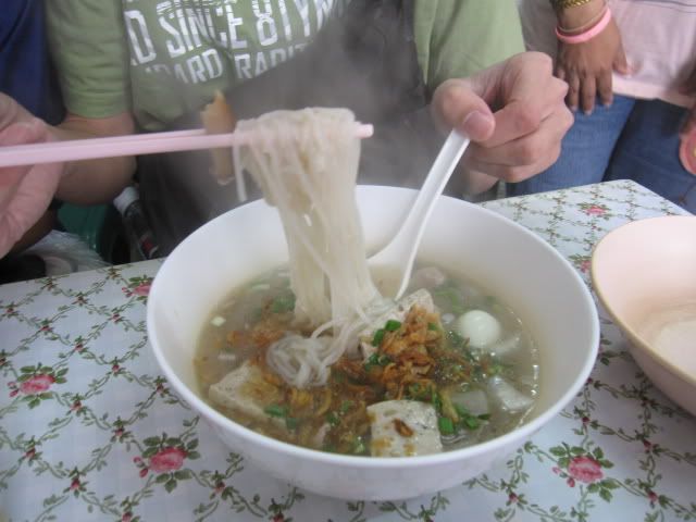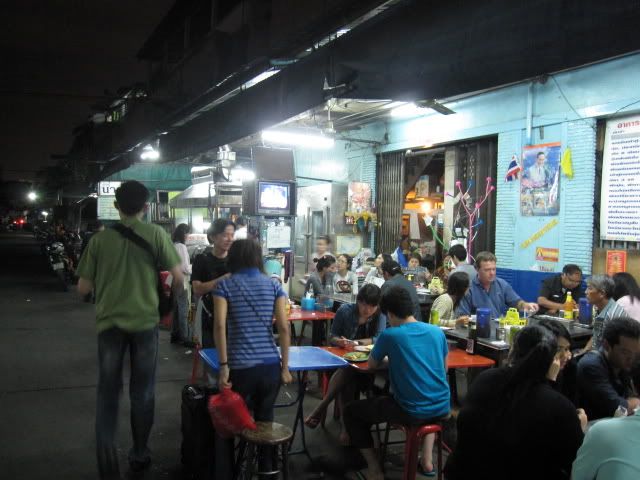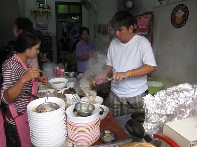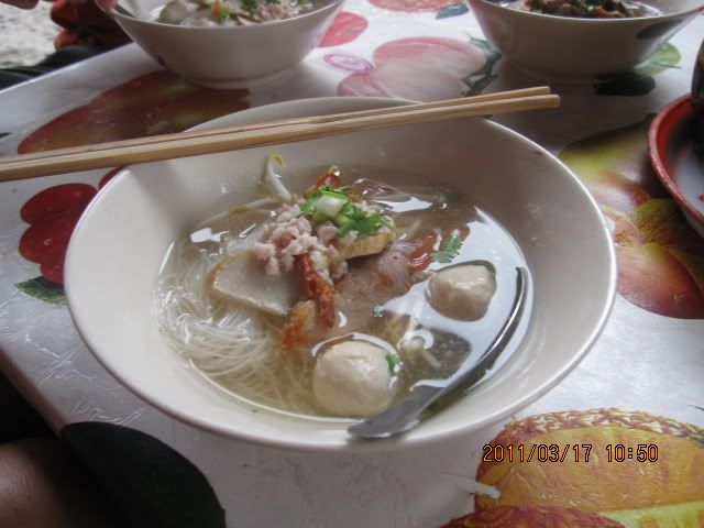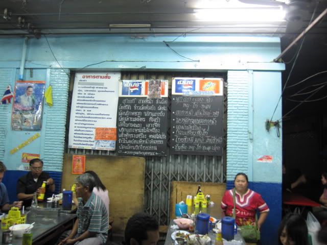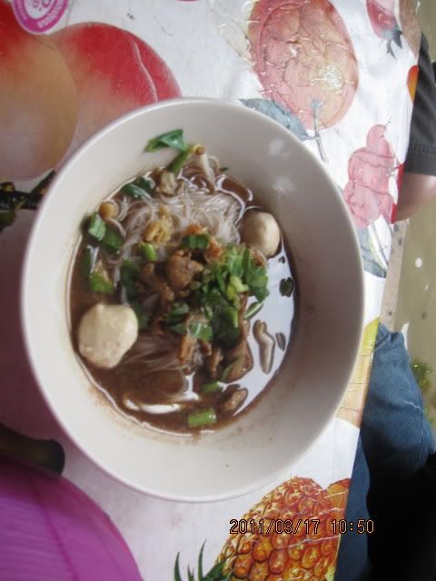 它有限制人数,所以我们四人只有两人可以按摩一小时,因为我们没有预约,加上他们要收工了… 在MRT Phahon Yothin附近(central plaza 旁和Chatuchak market附近),在‘弟鸭北京’吃晚餐,他的面不错一下,过得去,有不同的选择(味道像药材面)。早上,他是卖北京烧鸭的(下次再去,想试试他的烧鸭)。老板是thai 和chinese的后代的泰国人,用有限的英文跟我们交谈…没有英文menu,靠的是‘比手划脚’地定下四碗面,四碗面和水一百多bath……从那里回khao san,用了110 bath的taxi fee。
