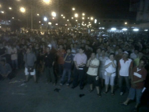 从晚上7点起,已开始聚集了300至400人,直至行动党国会领袖林吉祥抵达时,人潮已聚集至逾千人以上,导致附近的道路也出现车龙阵。