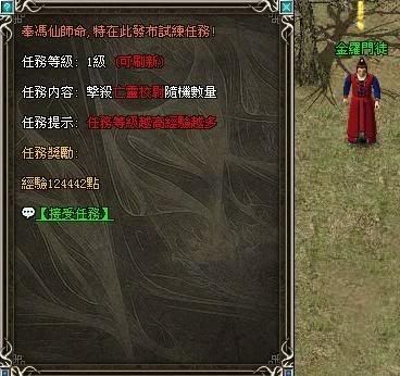如果對於領取了的任務不滿意,玩家可以再次點擊「金羅門徒」,選擇放棄任務並重新領取。重新領取的任務,擊殺怪物的類型以及需要擊殺的數量都會隨機產生。放棄任務後重新領取不需要再消耗元寶。(每日任務所要殺的怪物和殺怪數量都是隨機的,最少為35只,最多為200只)