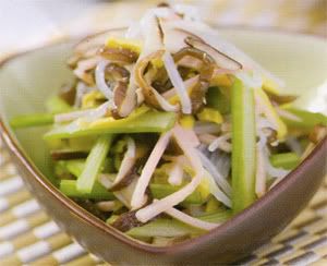 什锦香菇丝(水发香菇,熟火腿,芹菜)