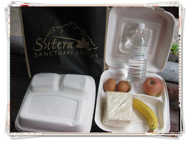 一早,各自整理了登山配备和足够的衣物,我们每人的背包是68公斤。多余的2件行李就交托给 MESILAU NATURE RESORT 办事处,让他们运到KINABALUPARK 办事处,一件行李收费 RM 10