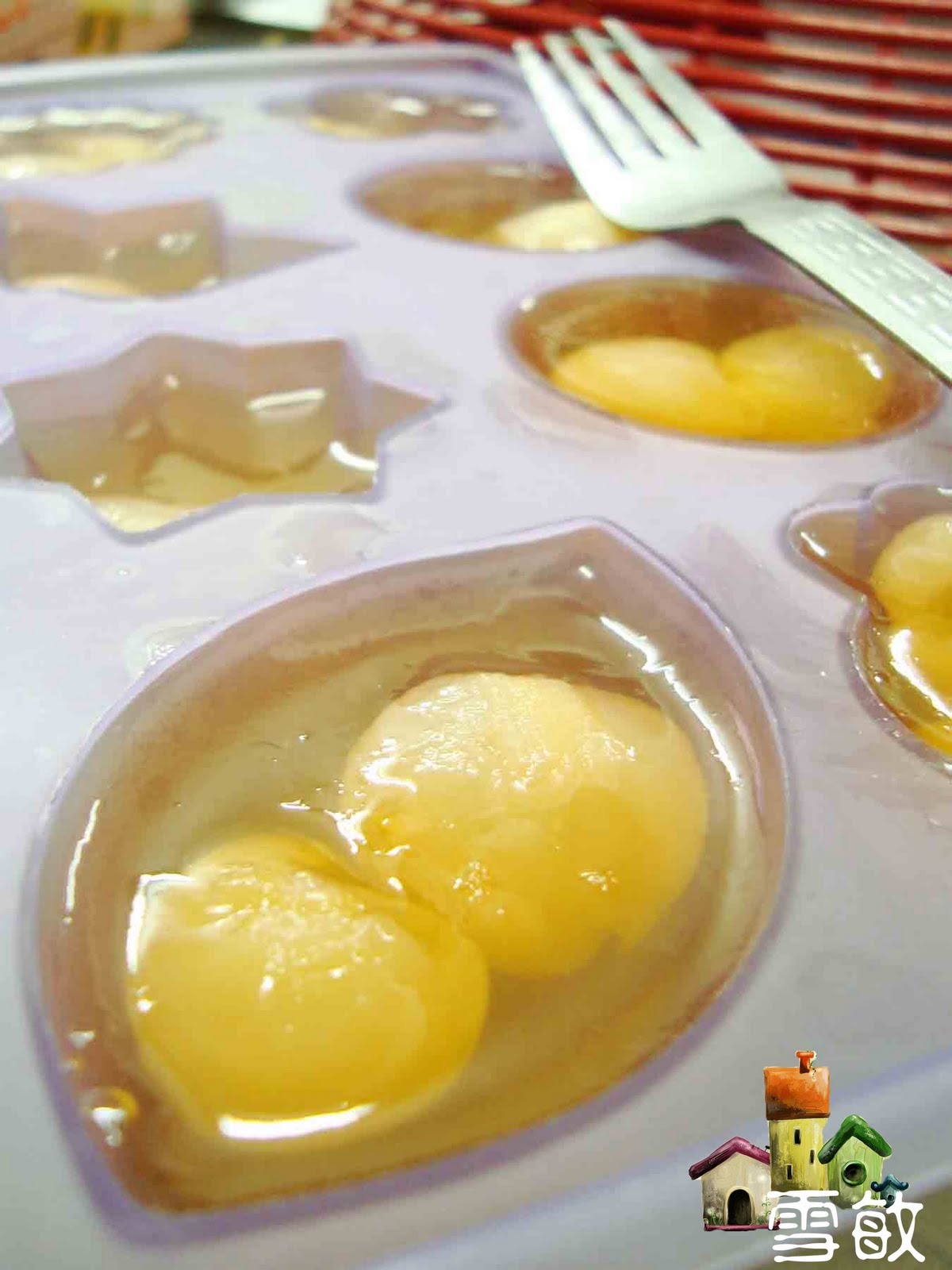我比较喜欢做软软的,吃起来口感一流,所以就不太适合倒模出来一颗颗吃~~外面卖的都是超硬的,所以不妨家里自己做~~蒟蒻粉 RM 4.99 +龙眼罐头水 RM 3.7 x2就可以做出 6 块模型酱多(我是分两次煮~~)