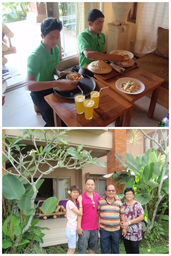 然后我们就去Verona Spa。我选了seasalt spa。痛到要命。惨! 之后,我们到Wayan Café 吃晚餐。那时爸妈已经很饿了。我们也叫了死神蛋糕,吃了之后的感觉是,很甜!哈哈。。。吃晚了差不多10pm。就叫TS的shuttle van来载。服务真好!