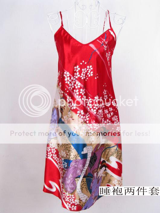 美! 日本浪漫樱花和服仿丝睡袍吊带两件套