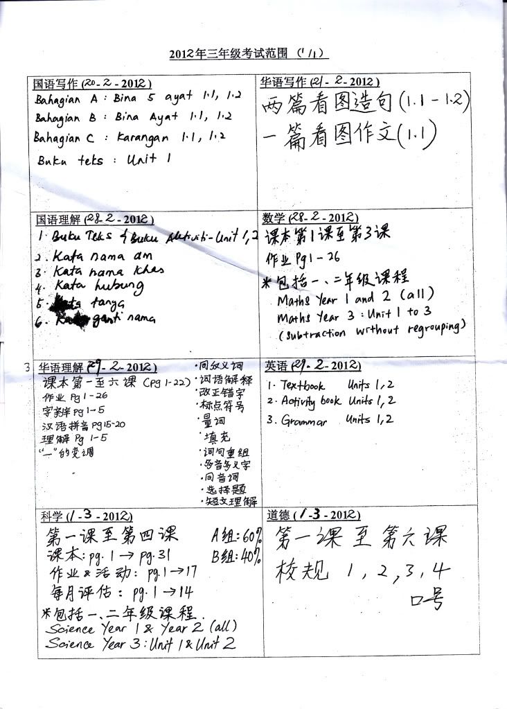 BM1的考试范围写着要读 Bina ayat 1.1, 1.2, Bina 5 ayat 1.1, 1.2, karangan 1.1 ...