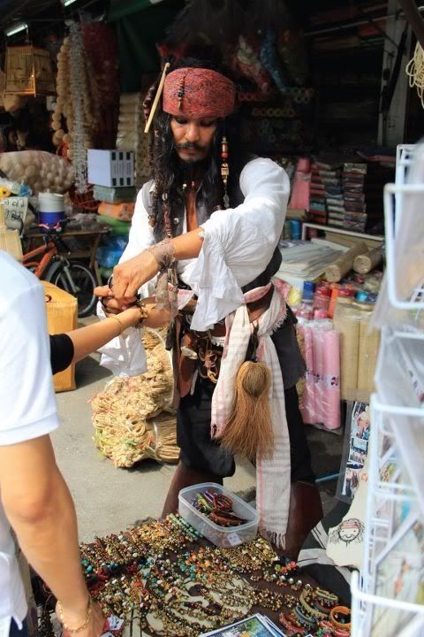 接着还是沿着河边走走看看。经过了巴刹,小学,桥等等。还经过夜市,就在河边桥下,可是小贩都还没开裆。朋友说看过网友写说可以从khaosanroad走到唐人街(yaowarat),我们就打算这样走到唐人街。如果不是所有的船都暂停服务,大皇宫和唐人街附近都有船站。