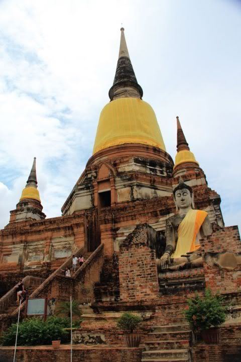 一路上看到大学,博物馆,大草场,街边的路摊等等。当时是雨季的开始,半途中遇上大雨,幸好有带雨伞,但鞋子还是湿了。就这样走到大皇宫(grandpalace),时间不足就没进大皇宫,而是去附近的卧佛(wat pho)。入门票是50泰币。地方还蛮大的,当时还在装修。
