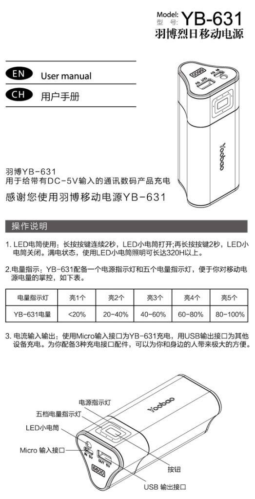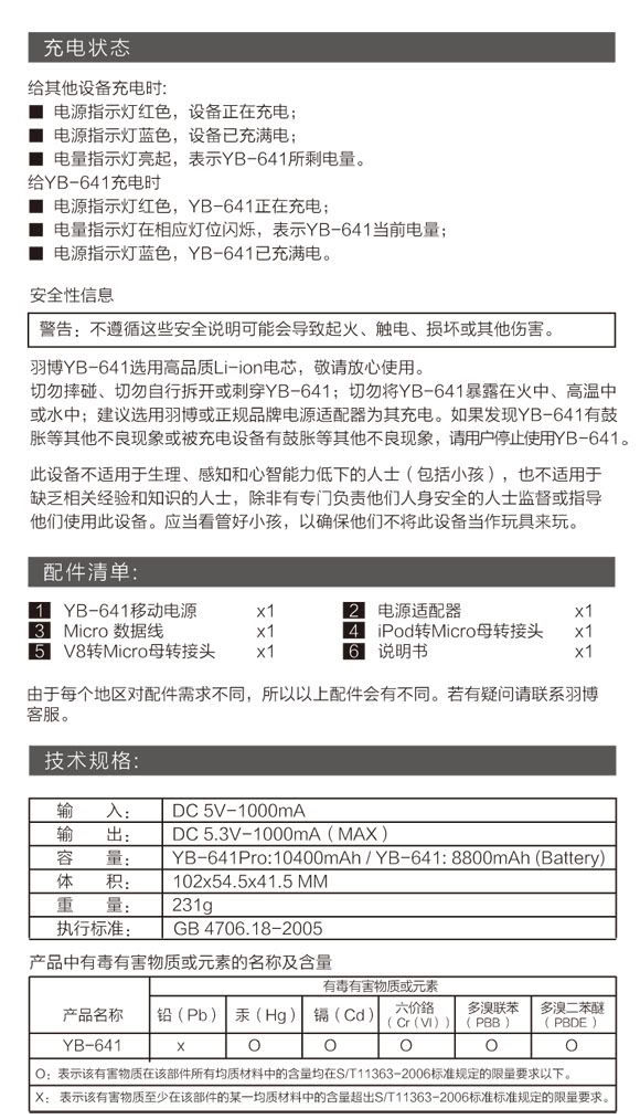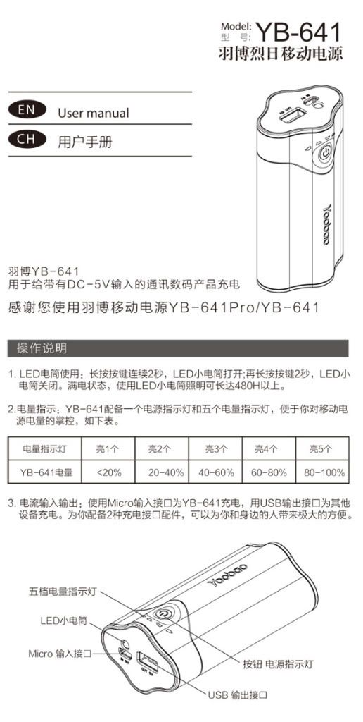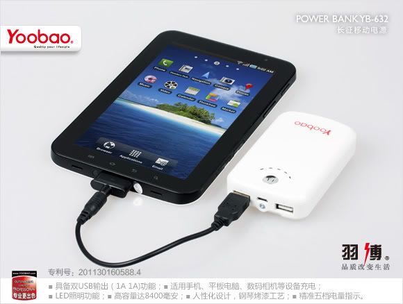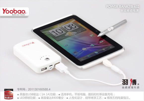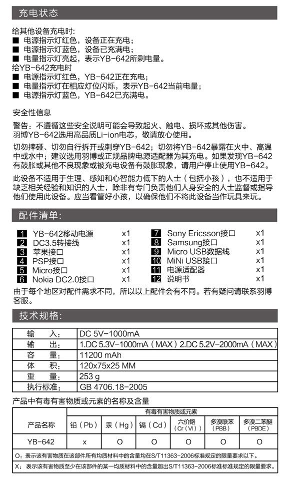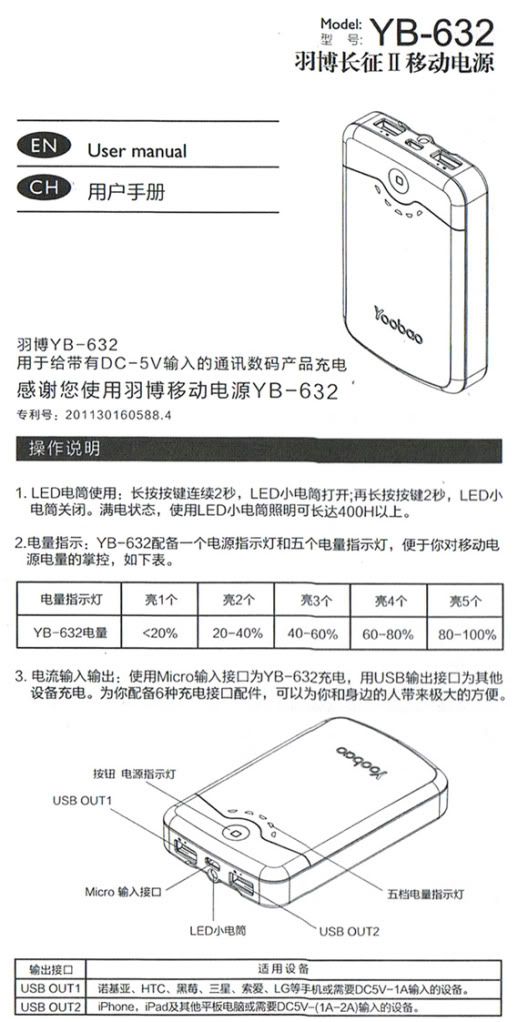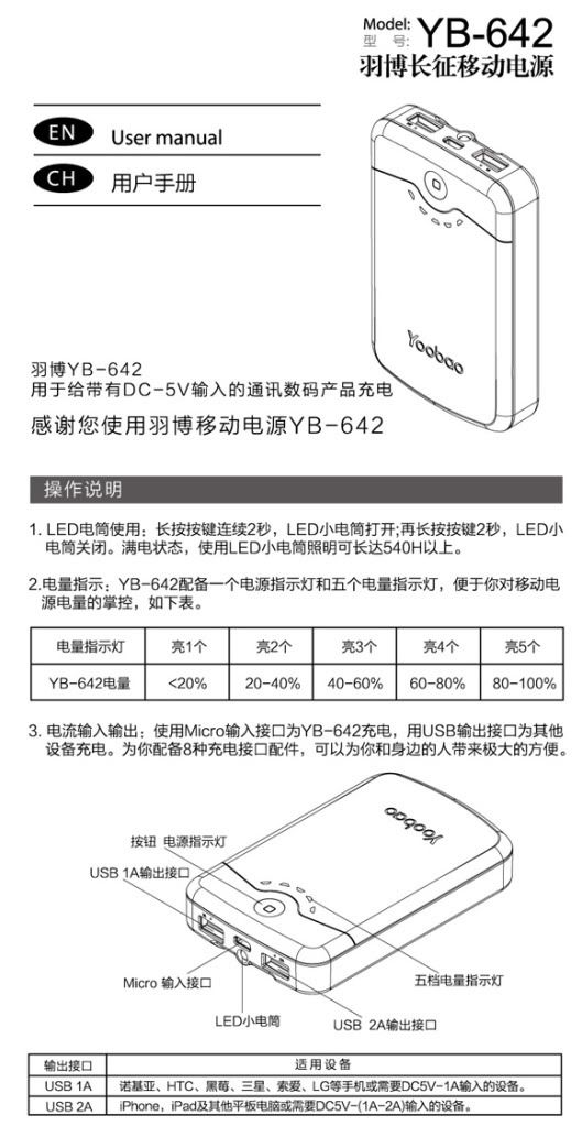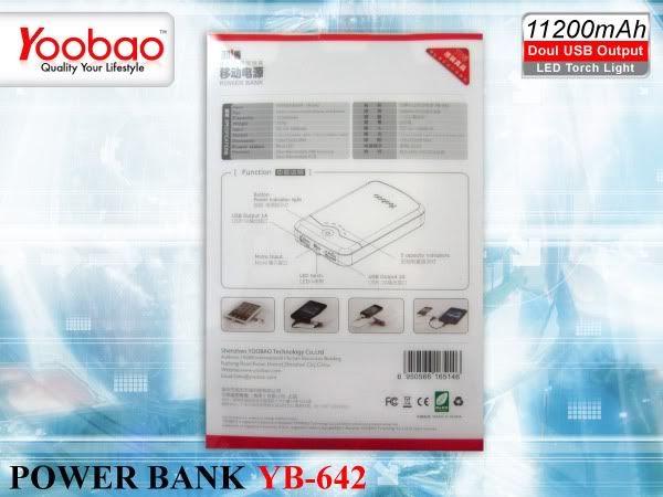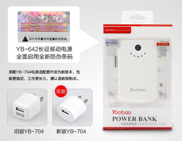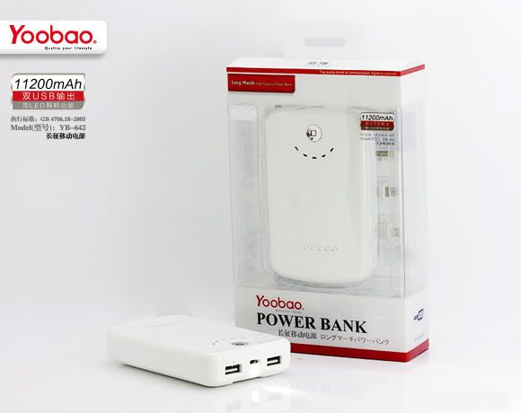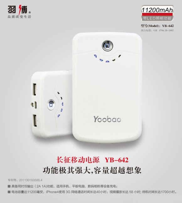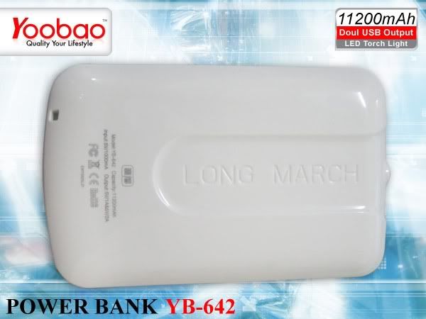 【产品名称】长征移动电源 Long March Power Bank YB-642 【产品型号】YB-642 【产品规格】11200毫安 【产品关注】35262 【通用型号】兼容大部分手机及移动设备