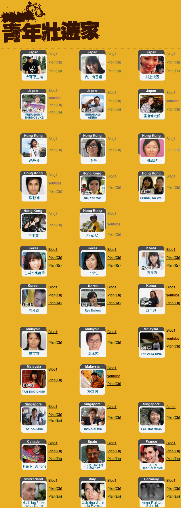 第四届青年壮游家大募集所有优胜者计划/来台纪录请上活动网站 http://youthtravel.tw/youthtrekker/ 查询!