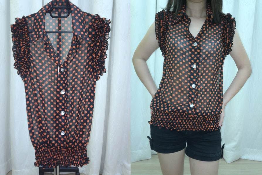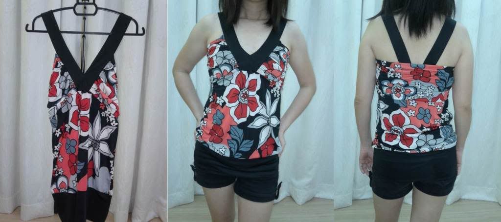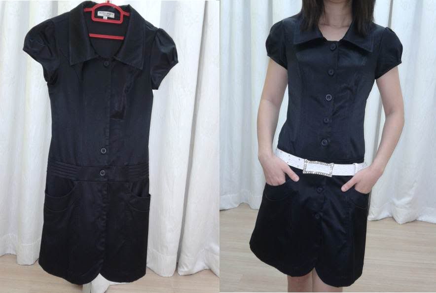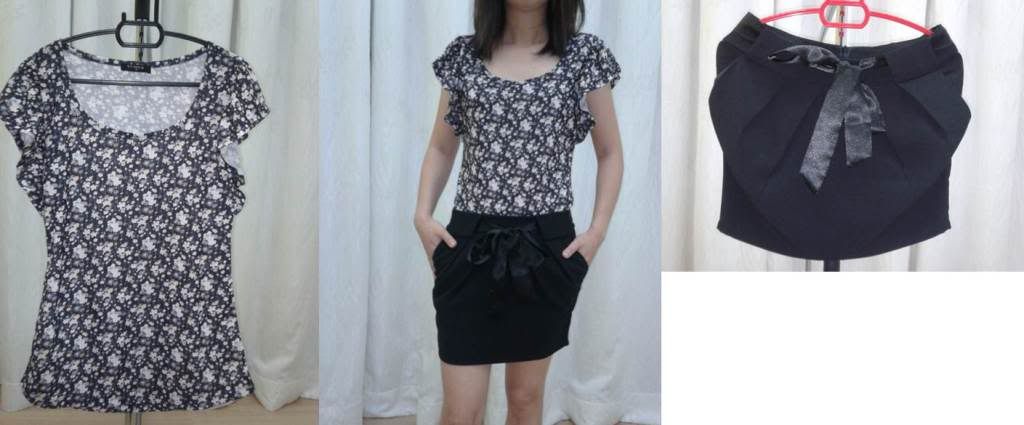 蓝底粹花上衣(RM15)+ (全新) 蝴蝶结黑色半身裙(RM15)