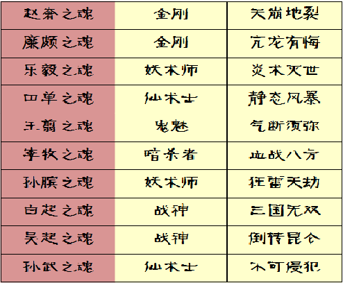 “廉颇之魂”、“田单之魂”这些稀世“魂将”除了拥有旷世真传的名将技能,还可以使用其他职业的技能,“亢龙有悔”、“静态风暴”等超强技能将带你走进新一轮的战役高潮。“魂将”除拥有超强的技能外,自身的属性成长也是高于一般名将,生来就是传说级红色名将(初始成长值1900),拉风十足,以一敌百!