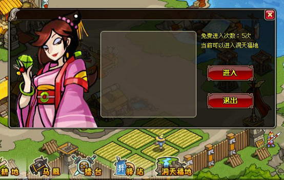 玩家每次进入洞天福地探险需消耗10点行动力,每日可5次免费探险,也可花费黄金购买探险次数,第一次10黄金,之后每次递增10黄金,50黄金封顶,此后再购买均为50黄金/次。玩家每次离开洞天福地后需要休息10分钟方可再次进入。