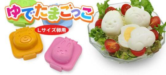 产地:日本入数:2入RM38使用方法:1 将煮熟的白煮蛋趁热时去壳         2 将鸡蛋放入模具中,盖紧盒盖         3 随后放入冷开水中冷却10分钟         4 最后打开取出注:产品只适用于大一些的鸡蛋,不适用于土鸡蛋噢,有的亲还用这款模具做饭团噢,有兴趣的亲可以试试看噢!!