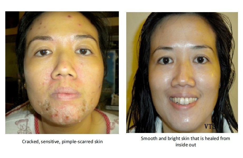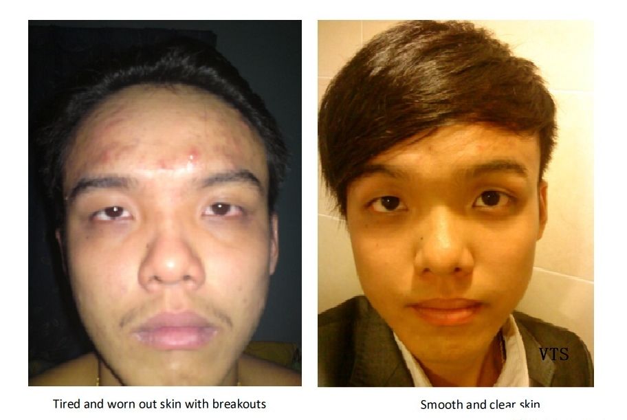 A5: 先不要那么紧张…这个是正常的先兆!首先,脸部不是变干,而是脸部拉紧了,然后为什么会有痘痘和其他暗疮都出来了?是因为Eumora正在把脸上的毒素拉出来,和把肮脏的东西排斥完出来,过后稍微有些脱皮的现象,这也是正常的,是因为当毒素排出来以后就会变成死皮,然后呢?就会看到新的一层健康的皮肤,这正是Eumora的功效!