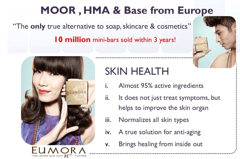 A1: 是的!Eumora可以用在全身上下,尤其是脸部,可以把毒素排出,因为Eumora里有独一无二的微藻HmA(Microalgae,请参考之前的HmA讲解),就好像电脑的核心一样,没有微藻Eumora是没有什么功效的!而且原料都是纯天然来自于欧洲(Europe),因此可以放心使用