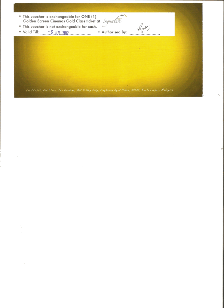 我有GOLDEN SCREEN CINEMA GOLD CLASS 的 戏票要出售。