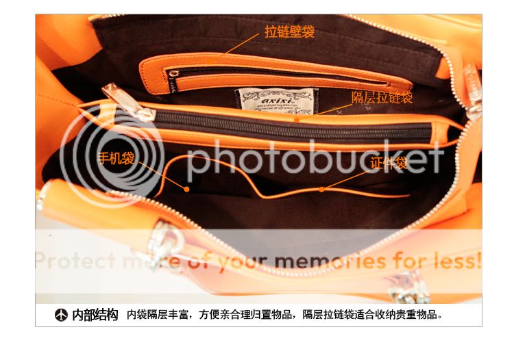 结构:内含1个可拆卸内袋(规格:宽24cm, 高18cm,厚6cm),1个拉链壁袋,2个小插袋,前后2个拉链袋