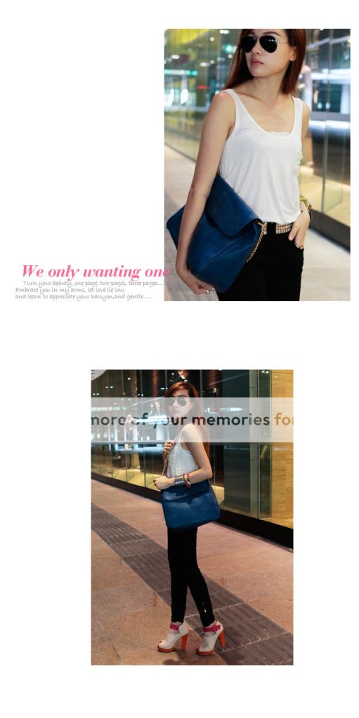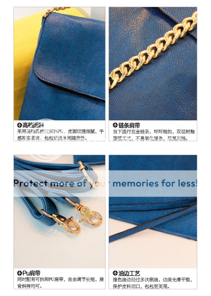欧美复古邮差包大容量单肩手提女包包中包 RM65.00 颜色分类: 宝蓝 尺寸约为:上宽 46cm 下宽 30cm 高 28cm 厚 14cm 短带手提高 12cm 长带手提高 33cm 肩带高 60cm 背带长 120cm,可调节范围60~120cm 内袋:宽 26cm 高 20cm 厚 10cm