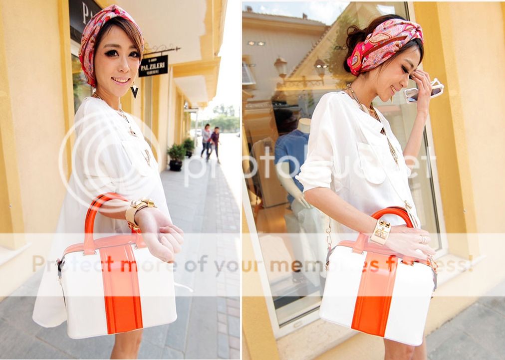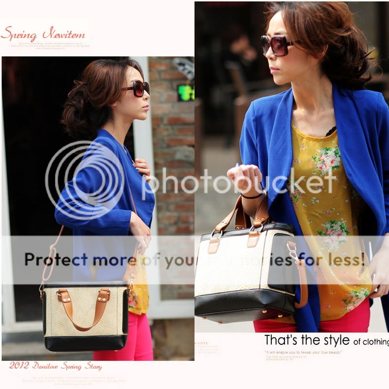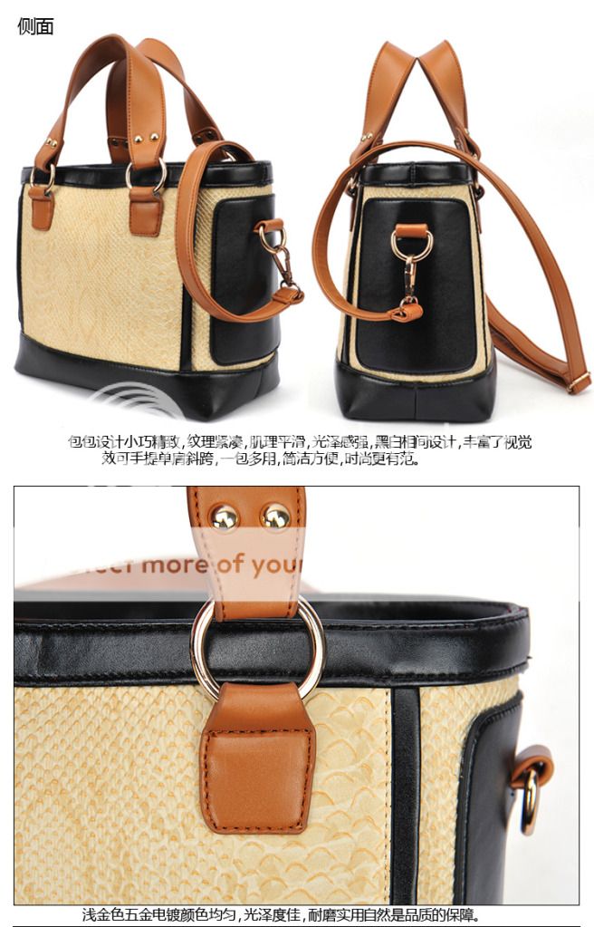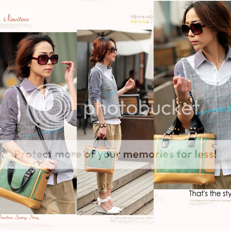 欧美复古拼色手提包百搭款大包女包包学院风包邮差包2020-RM39.00
