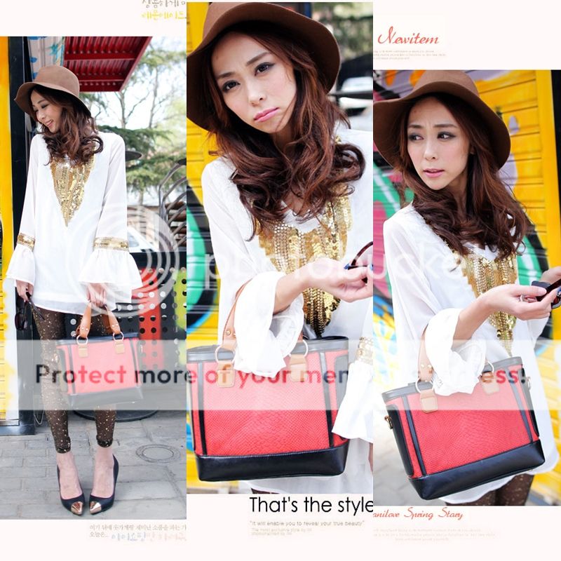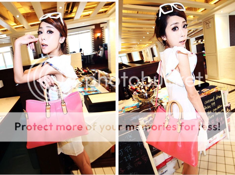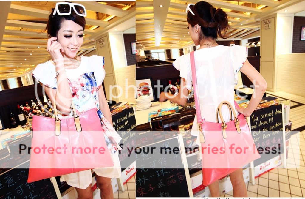 欧美范简约时尚铆钉子母包单肩包 RM55.00 颜色分类: 玫红 加州橙尺寸约为:上宽 45cm 下宽 36cm 高 23cm 厚 19cm 手提高 24cm 肩带高 67cm 背带长(最短~最长)111~125cm