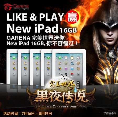 Garena 完美世界每周送你 New iPad, 你只须Like & Play !
