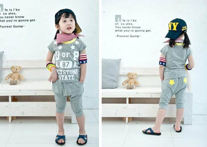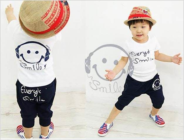 B001 - 笑脸字母套装 纯棉短袖T恤+中裤2件童套装