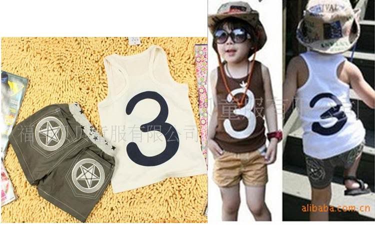 B002 - 韩版夏装3字男童装宝宝背心短裤套装